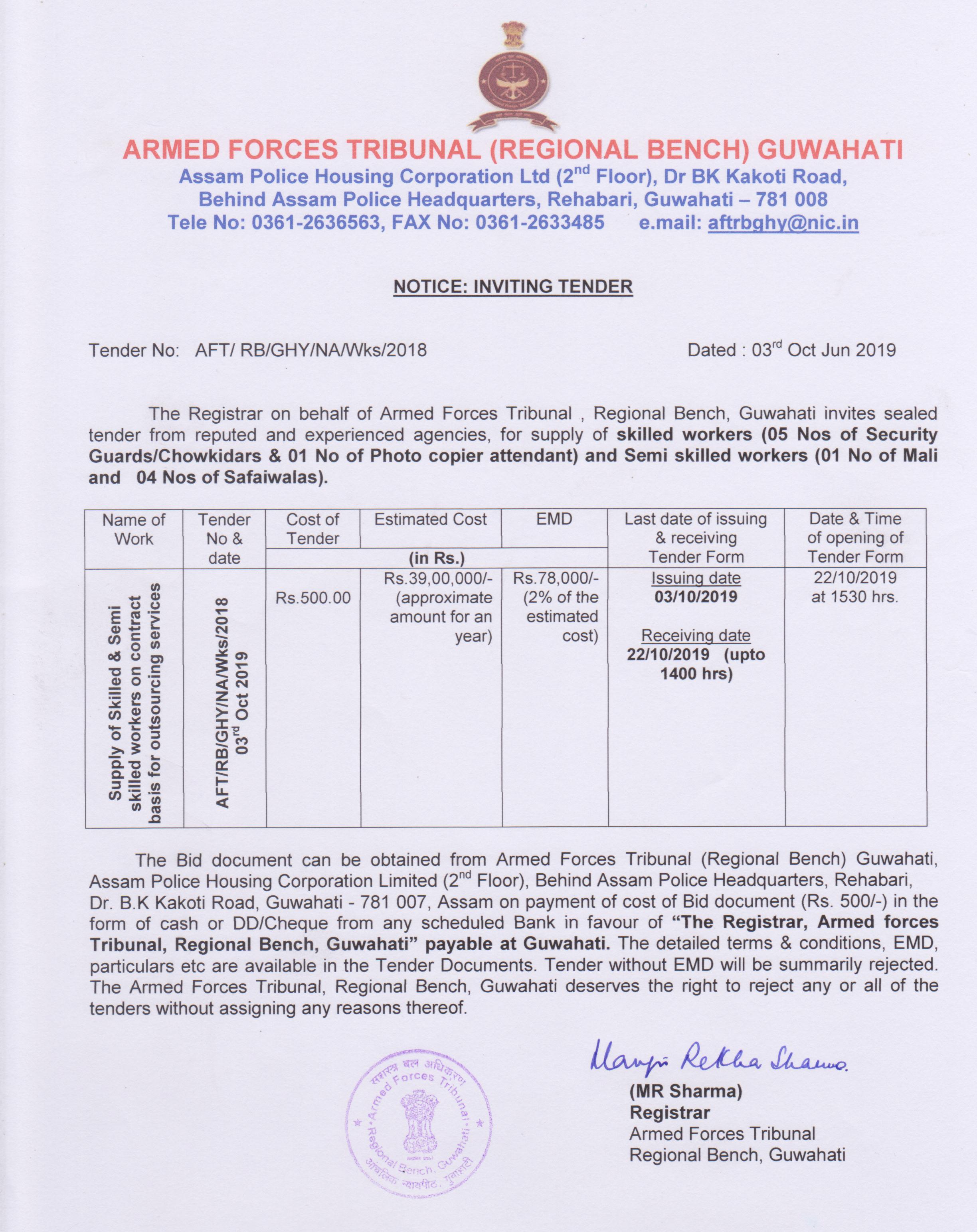NOTICE: INVITING TENDER dated 03 Oct 2019